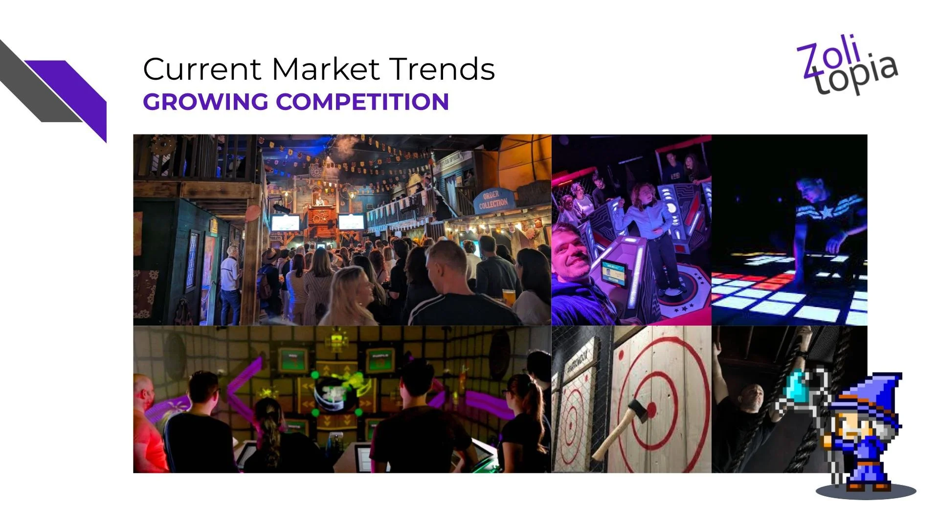 We used to be the immersive experience in town. Now we’re competing with immersive darts, mini golf, challenge arcades, VR arenas, game shows, and food-and-drink driven activity venues.